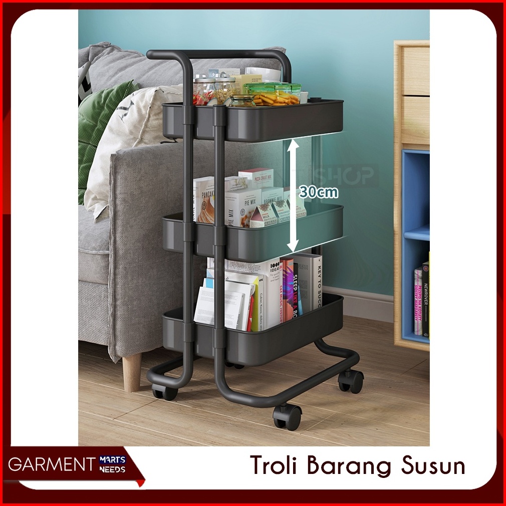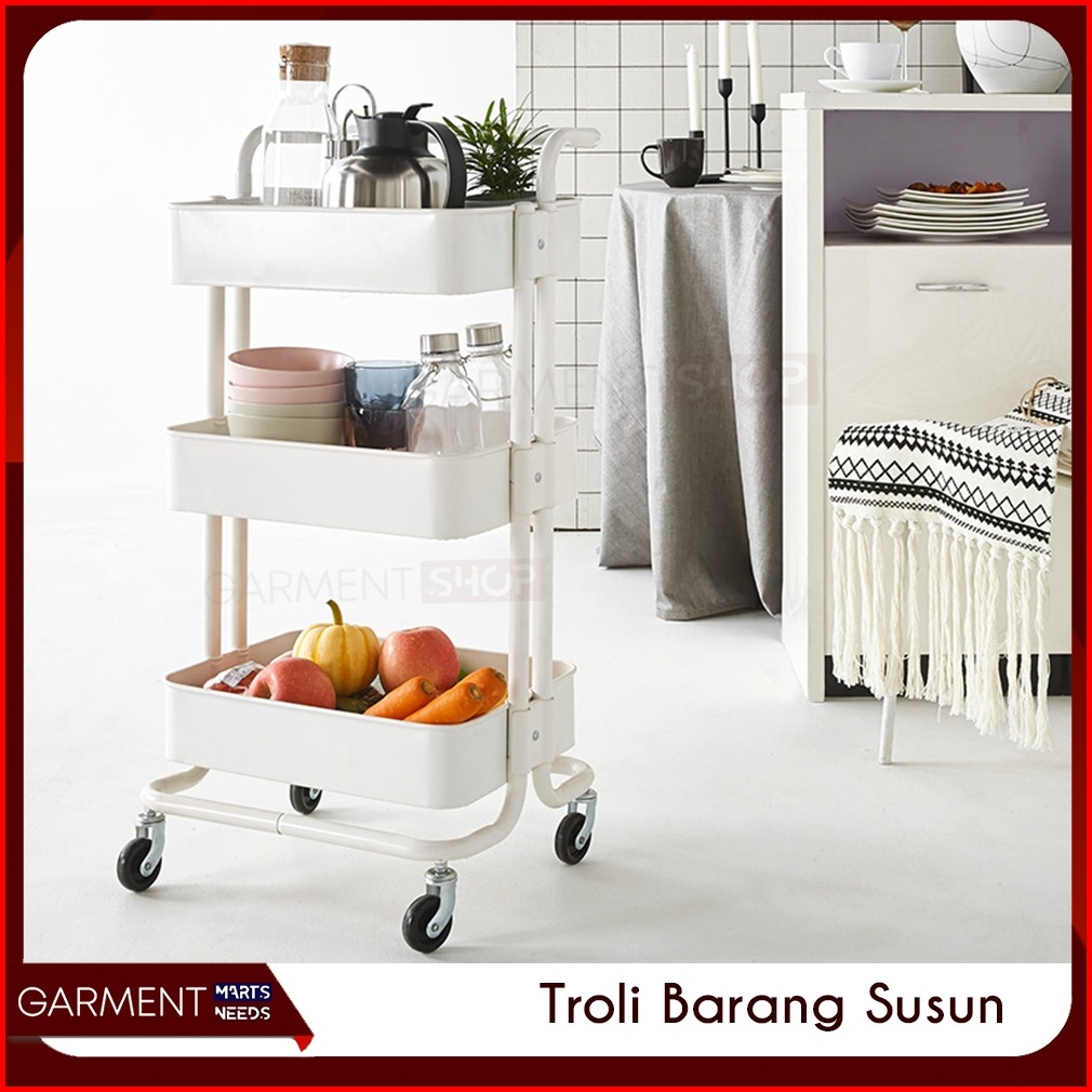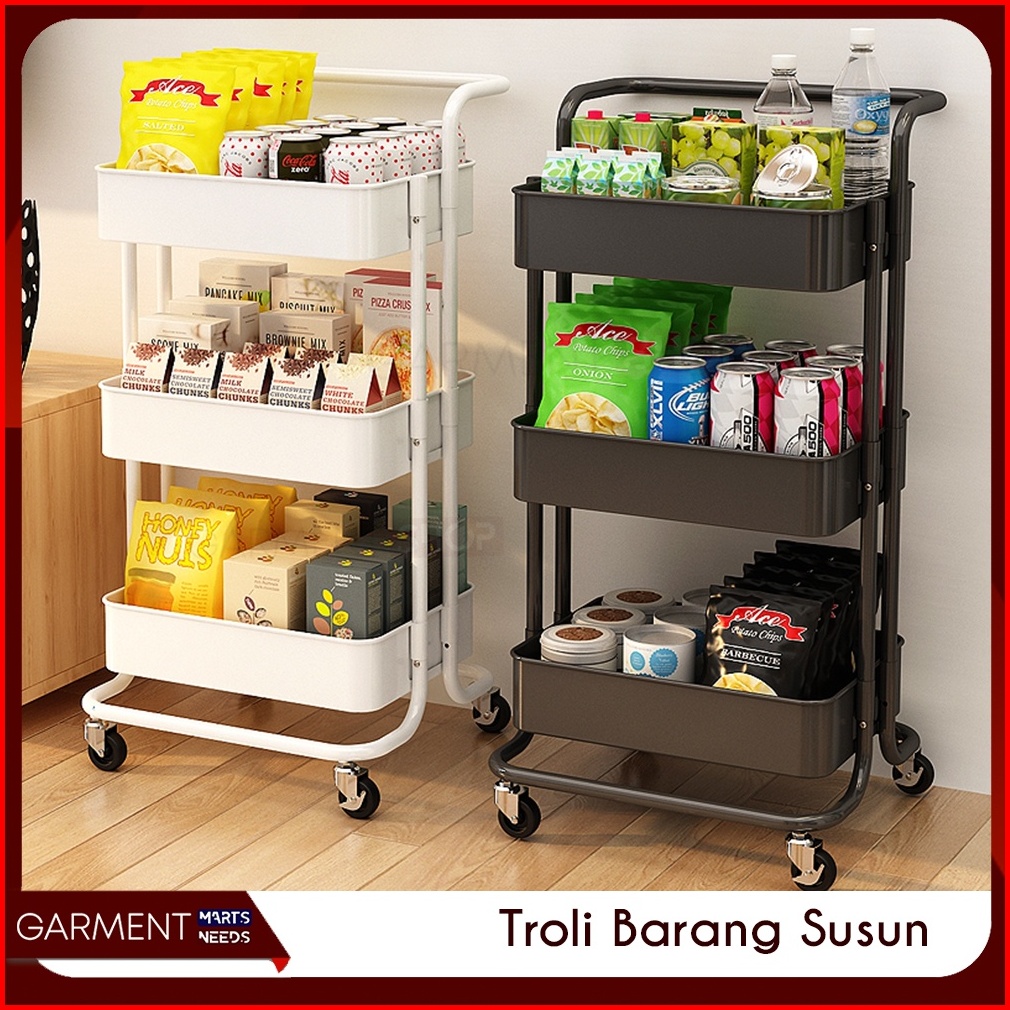 Rak Troli Susun Dapur 3 Tingkat Trolley Salon Estetis Hitam Putih Serbaguna Dengan Roda Dan Pegangan