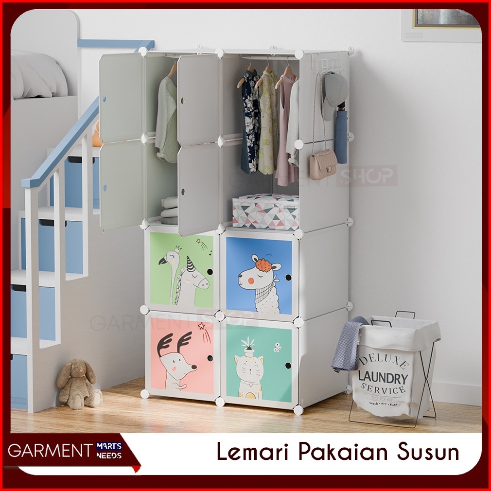 Lemari Pakaian Susun Anti Debu Rak Plastik Diy Portable Multilayer Tempat Sepatu Buku Selimut Serbaguna