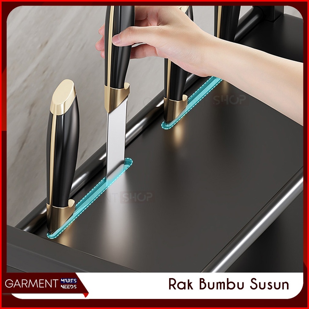 Rak Bumbu Dapur 3 Susun Penyimpanan Talenan Sendok Pisau Serbaguna Bahan Stainless Steel Anti Karat