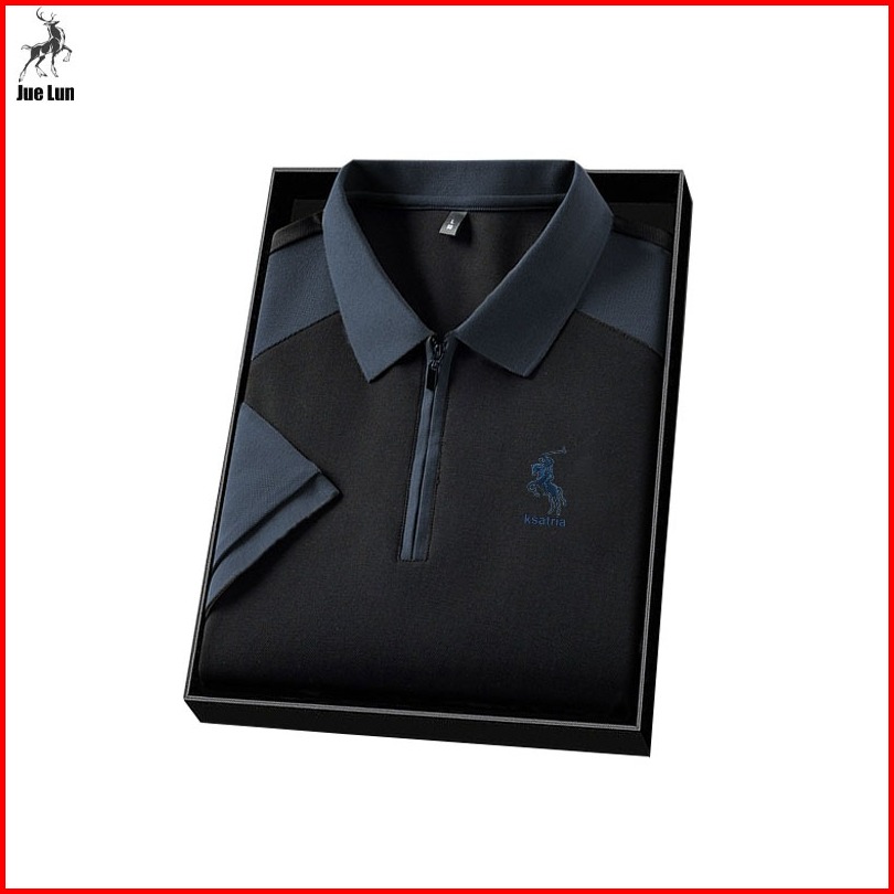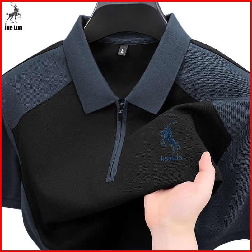 Jue Lun Baju Polo Shirt Pria Kaos Polo Shirt Zipper Pria Kaos Polo Pria Kerah Resleting Premium Anti-kusut