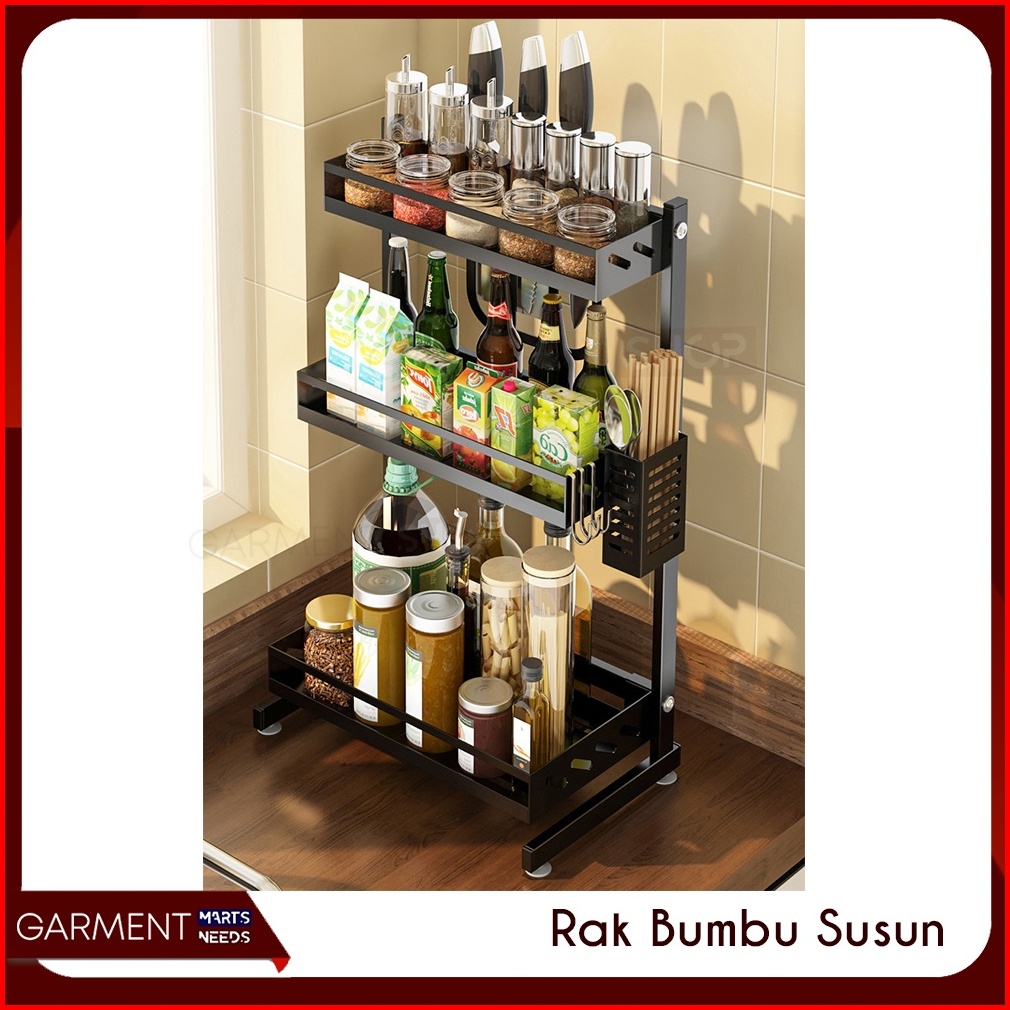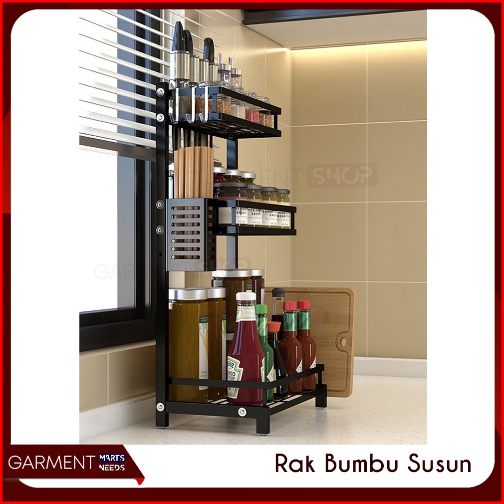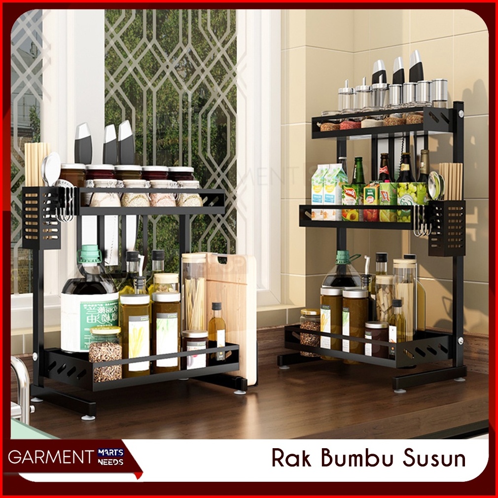 Rak Bumbu Dapur Garam Botol Kecap Serbaguna 2 3 Susun Stainless Steel Multifungsi Anti Karat