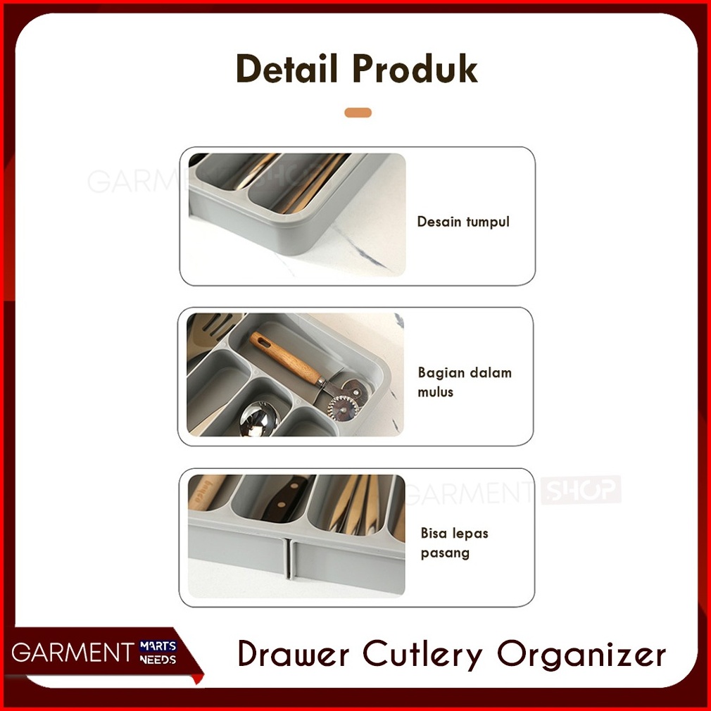 Tempat Sendok Garpu Organizer Cutlery Kitchen Rak Sekat Laci Penyimpan Alat Dapur Adjustable