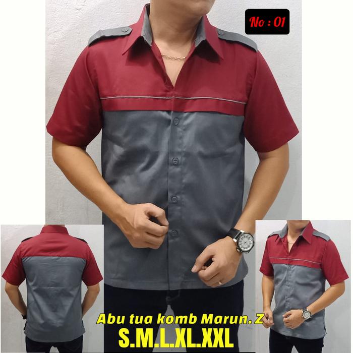 KEMEJA SERAGAM PROMOSI POLOS MEKANIK - TEKNISI - KOMUNITAS - ABU-KOMB-MARUN, S
