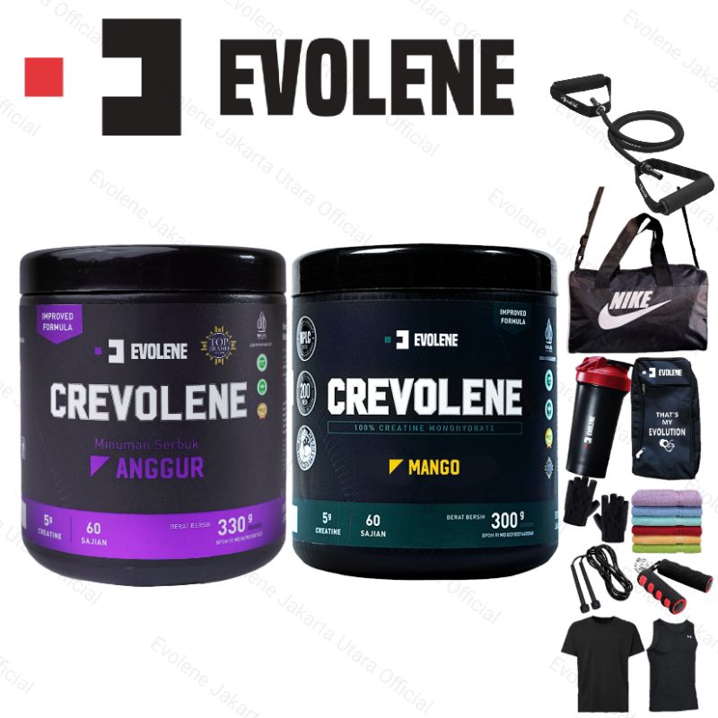 CREVOLENE 300gram Creatine Monohydrate Evolene & PREVO 25 sachet Pre workout EVOLENE Slemen Fitness