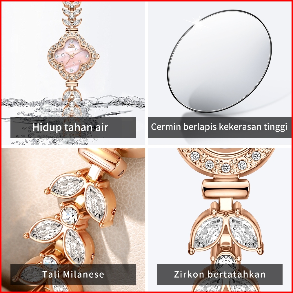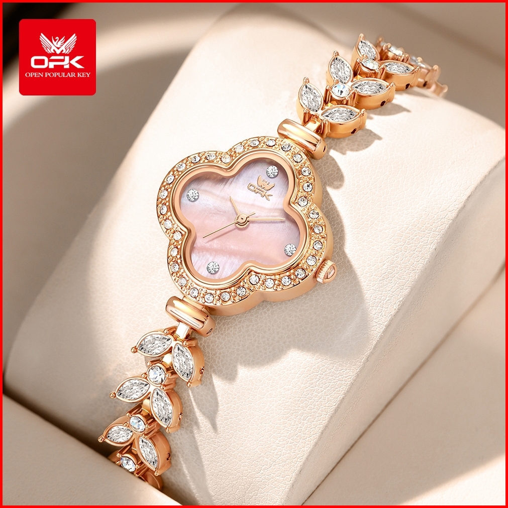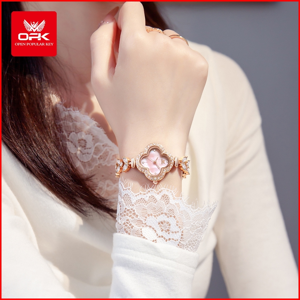 Opk Jam Tangan Wanita Anti Air Original Unik Berlian Stainless Steel Fashion Bisnis Rose Pink Womem Watch Model 6049