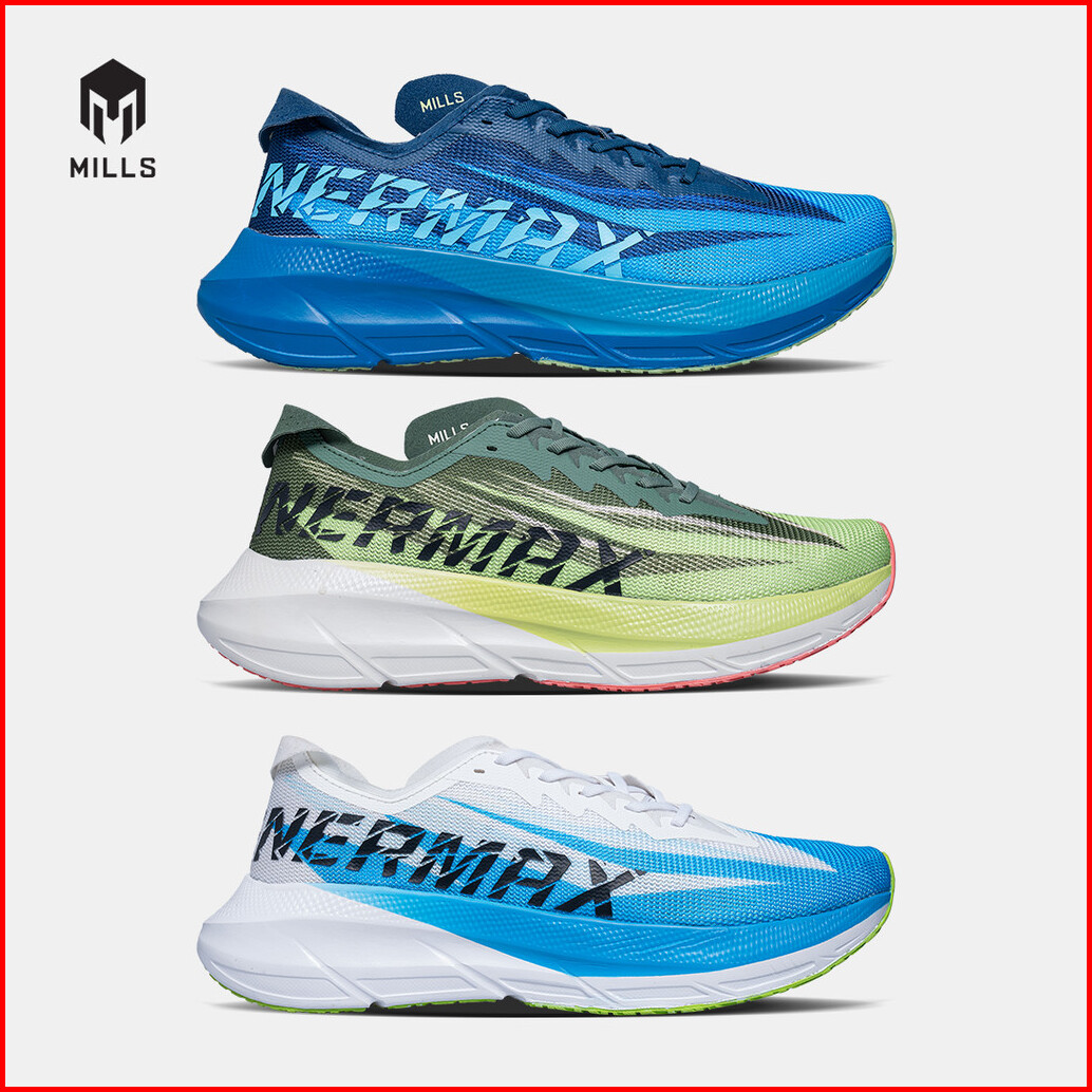 Mills Sepatu Lari Running Shoes Enermax Cushion M3 White Blue Lime.green 9104203