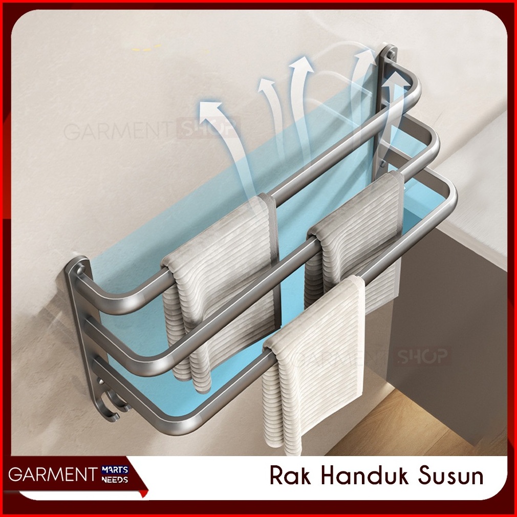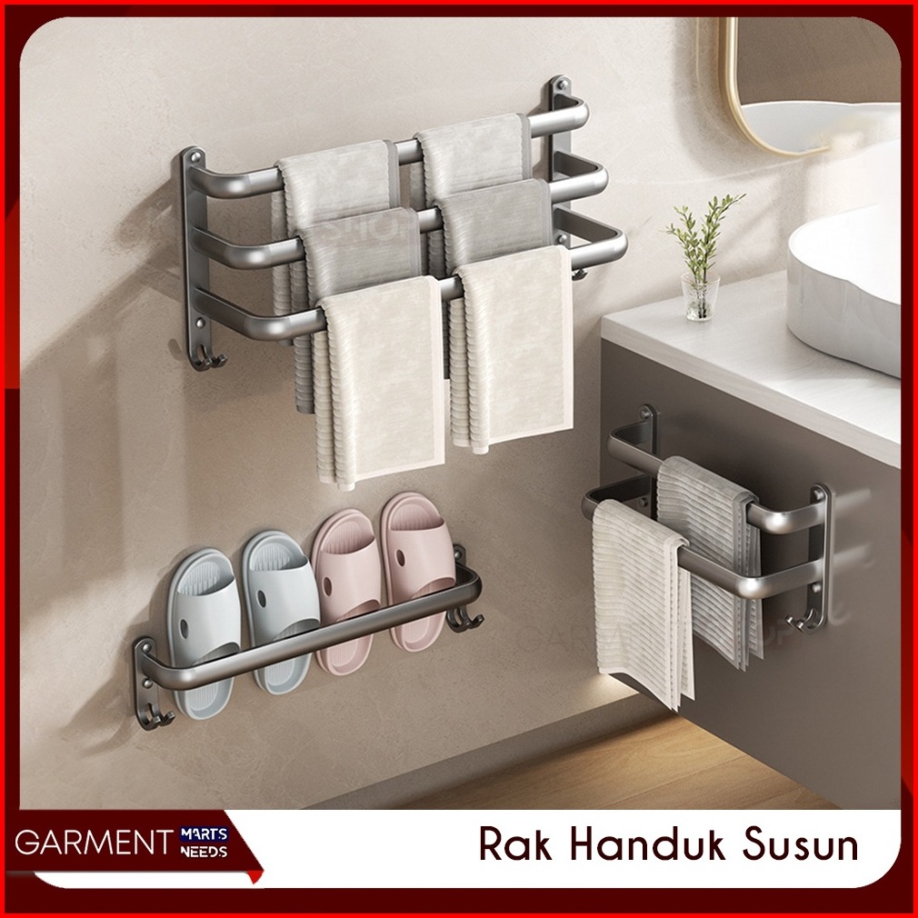 Gantungan Handuk Kamar Mandi Rak Tempel Aluminium 1 2 3 Susun Premium Stainless Steel Anti Karat