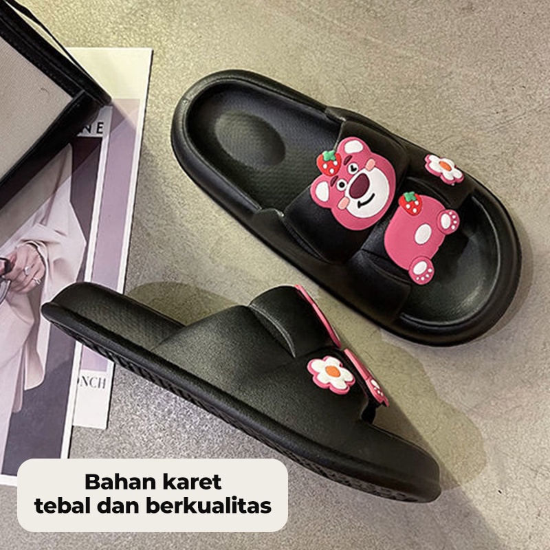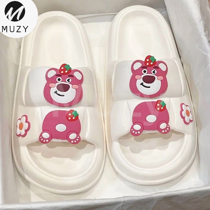 MUZY SANDAL SLOP KARET PVC EMPUK RINGAN NON-SLIP SANDAL JELLY OUTDOOR BEAR LUCU TRENDY SANDAL RUMAH/FLAT/SANTAI WANITA PRIA KEKINIAN HSN106