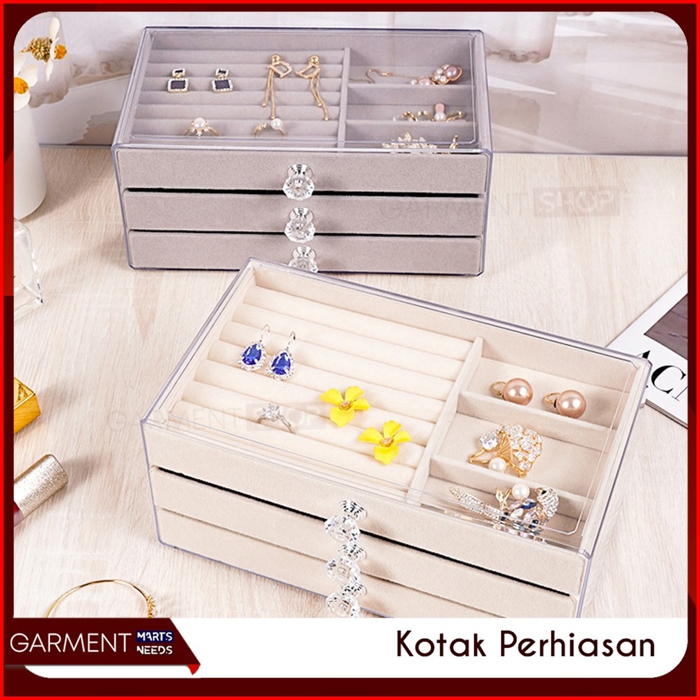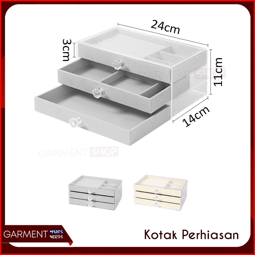 Kotak Aksesoris Tempat Penyimpanan Jewelry Box Acrylic Laci 3 Susun Organizer Meja Rias