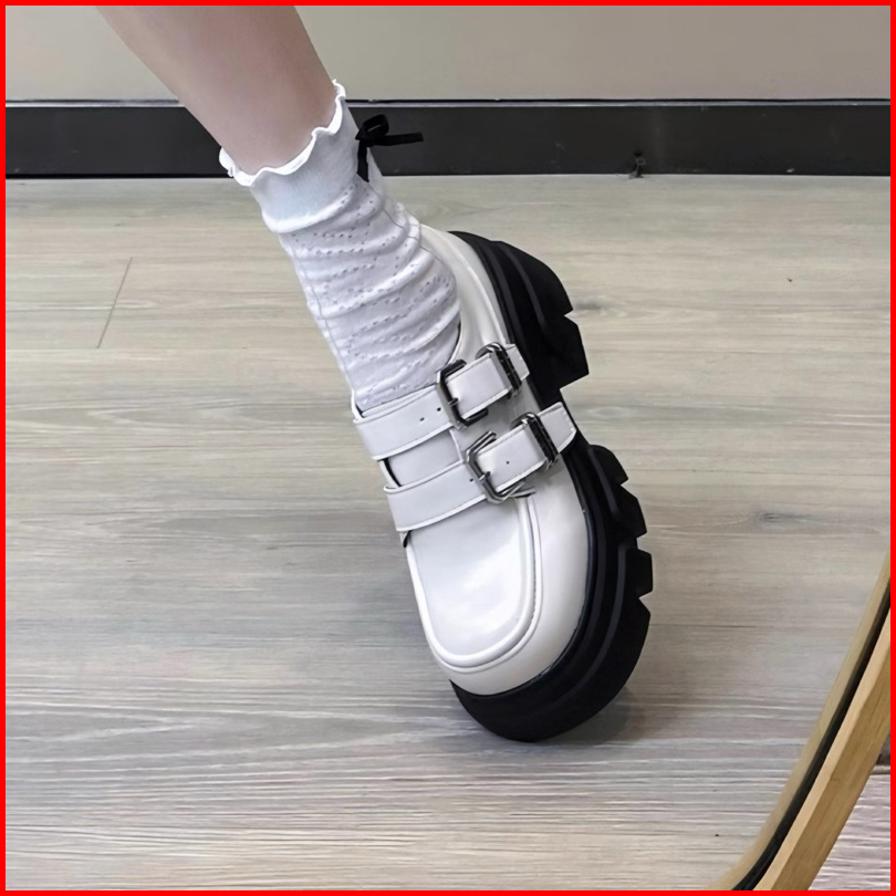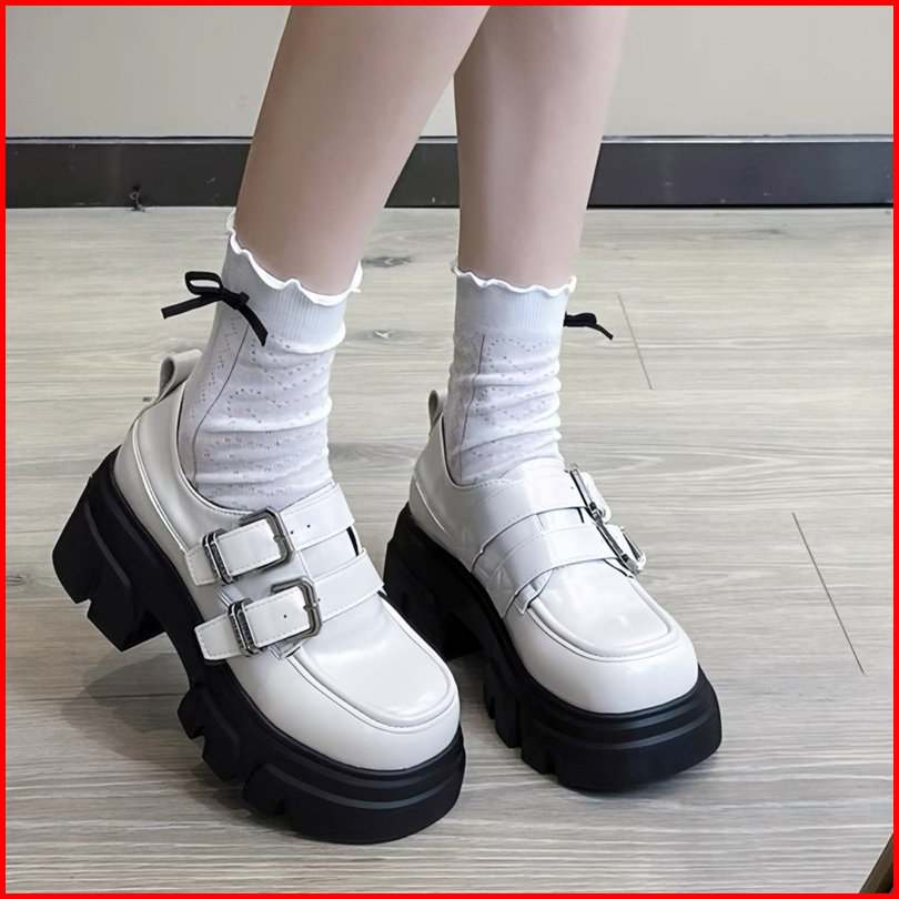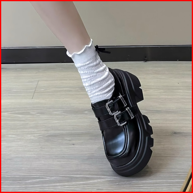 Sepatu Docmart Wanita Seungri Loafers Black Double Gesper Terbaru Fashion Shoes Korean Style 1880
