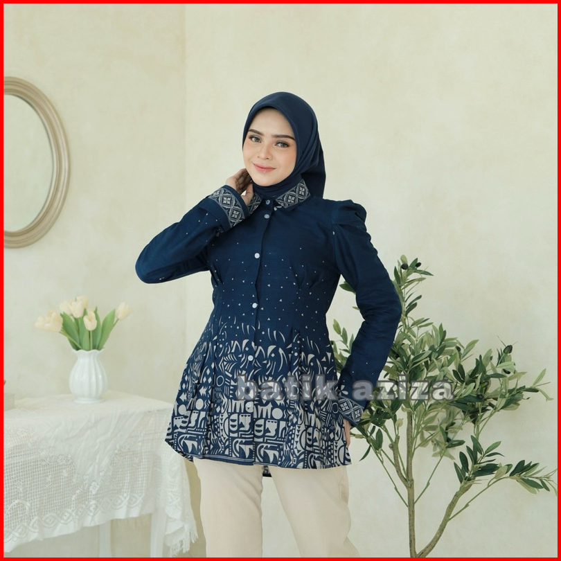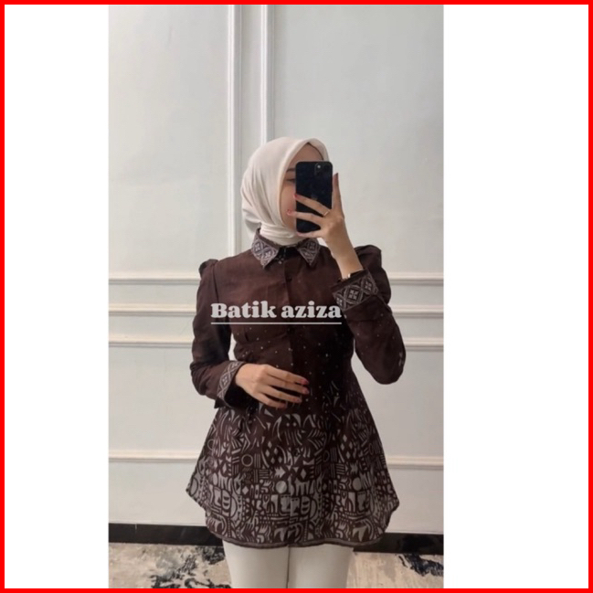 Atasan Batik Modern Batik Kerja Wanita Warna Burgundy Mahogany Blus Maheswari By Batik Aziza