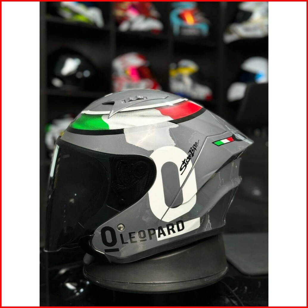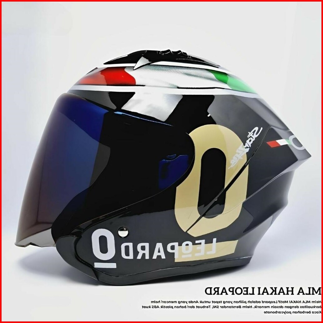 Helm Half Face Terbaru Mla Hakai Motif Leopard Grey Glosy Kaca Visor Clear Blue Silver Hitam Helm Half Face Terbaru Sni