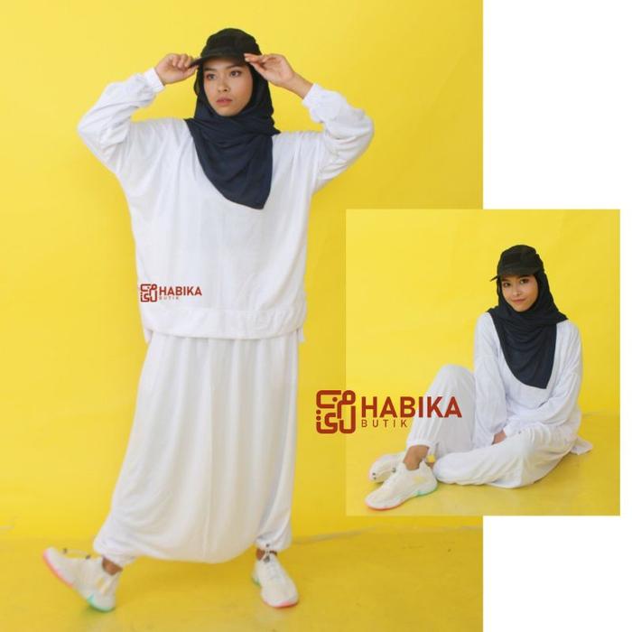 Setelan Olahraga Dri Fit Rok Celana sirwal dan Kaos bahan Jersey Dri Fit - White M - L ( All Size )