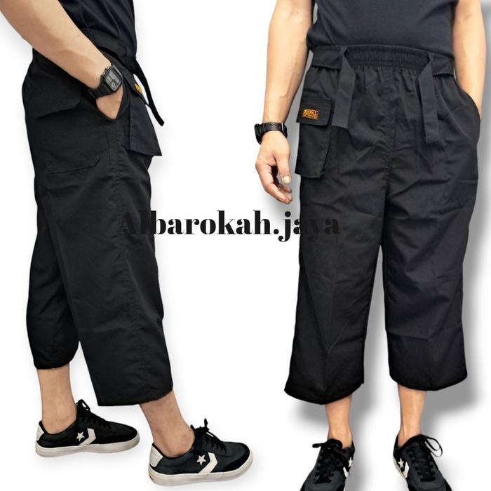 celana panjang Muslim pria sirwal dewasacelana komprang sholat motif kantong hp depan bahan tebal BUSPAL - hitam M