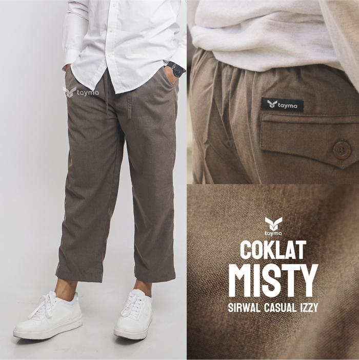 Celana Sirwal Casual Pria Pinggang Full Karet Nyaman Katun Semiwool Anti Kusut Adem Semiformal By Tayma - HITAM M