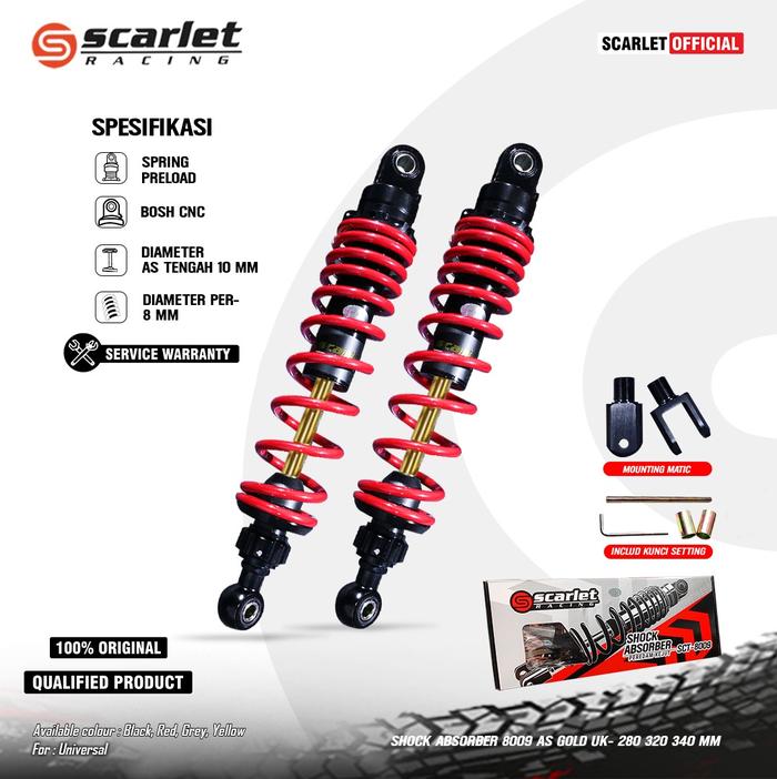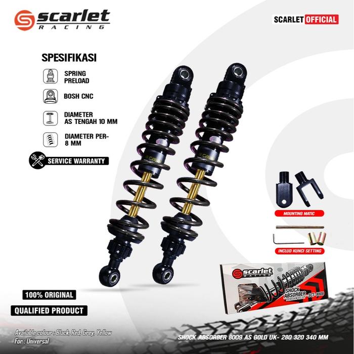 Scarlet Racing - Shock Shockbreaker Absorber 8009 AS Gold (O+U) Uk 280 320 340 mm - BLACK 280mm
