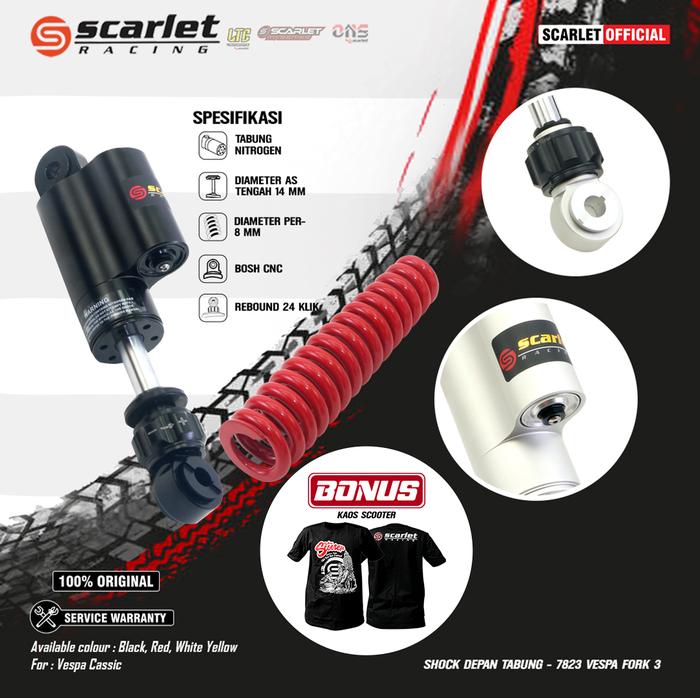 SCARLET RACING Shock Breaker Skok Depan Tabung Motor Vespa Klasik 7823 Fork3 Motorcycle - Black/Black