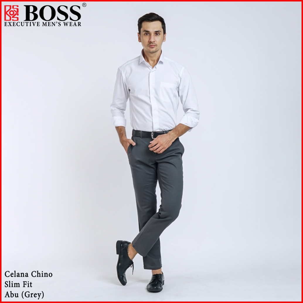 Boss Celana Panjang Chino Pria Slim Fit Abu
