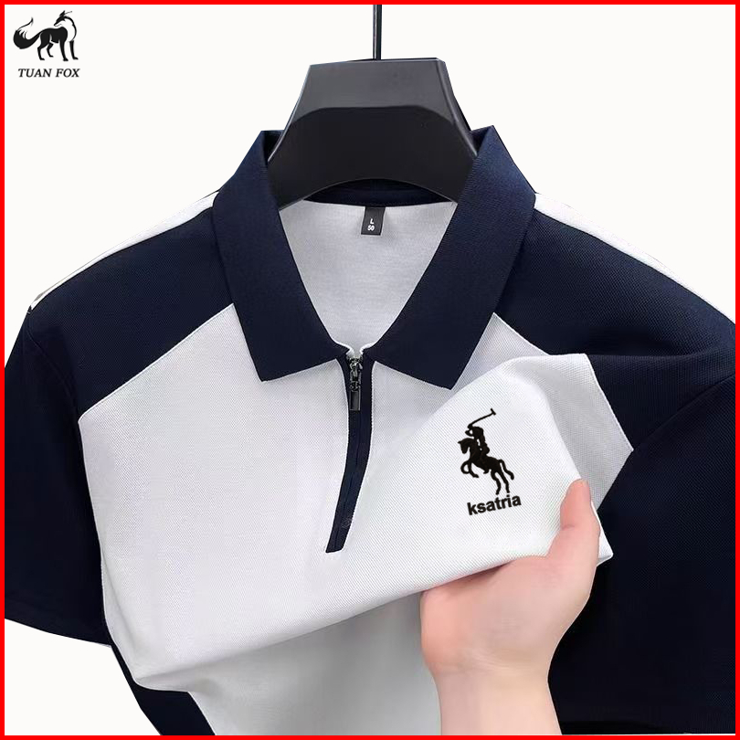 Tuan Fox Baju Kaos Kerah Polo Zipper Pria Baju Kaos Pria Polos Promo Bordir Baju Kemeja Pria Lengan Pendek Kaos Berkerah