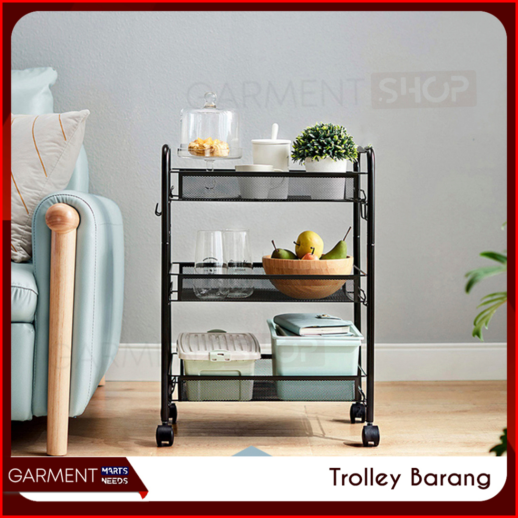 Rak Troli Lantai Serbaguna Beroda Ruang Tamu Tidur Dapur Kamar Mandi Tingkat 3 Susun