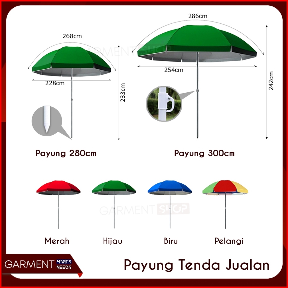 Payung Tenda Jualan 260 280 300 Cm Jumbo Outdoor Pantai Garden Lapak Caffe Anti Uv Parasol Kuat