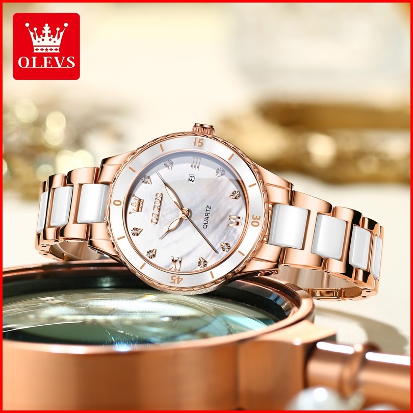 Olevs Jam Tangan Wanita Anti Air Original Unik Keramik Berlian Stainless Steel Fashion Womem Watch Model 9985