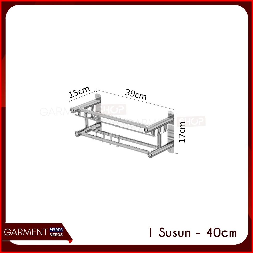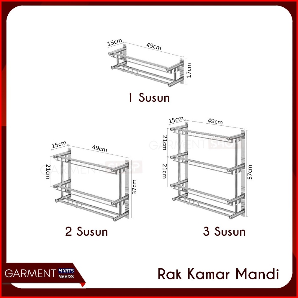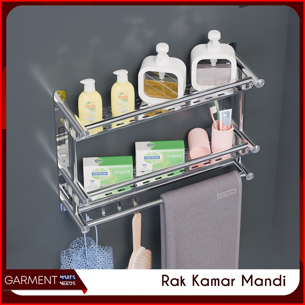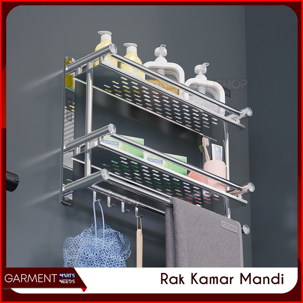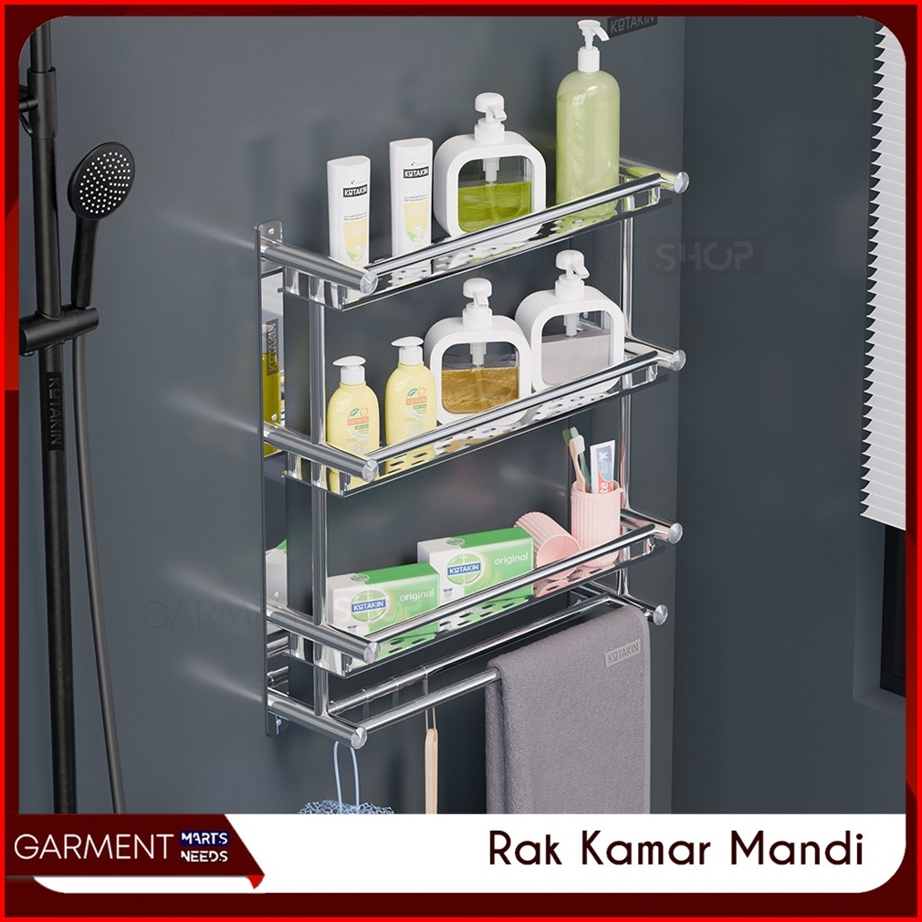 Rak Dinding Kamar Mandi Susun Rack Kabinet Penyimpan Sabun Shampo Gantungan Handuk Stainless Steel Anti Karat