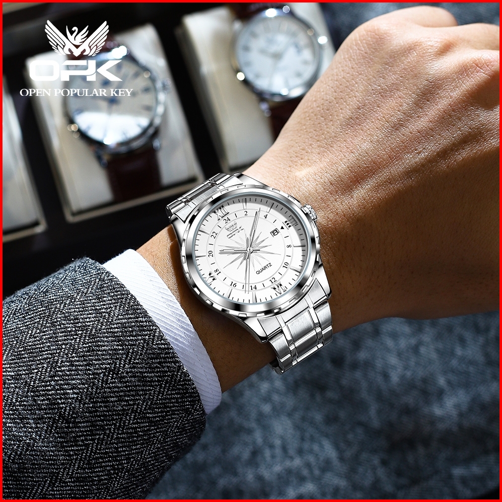 Opk Jam Tangan Pria Anti Air Original Stainless Steel Analog Date Luminous Unik Skala Biru Men Watch Model 6003