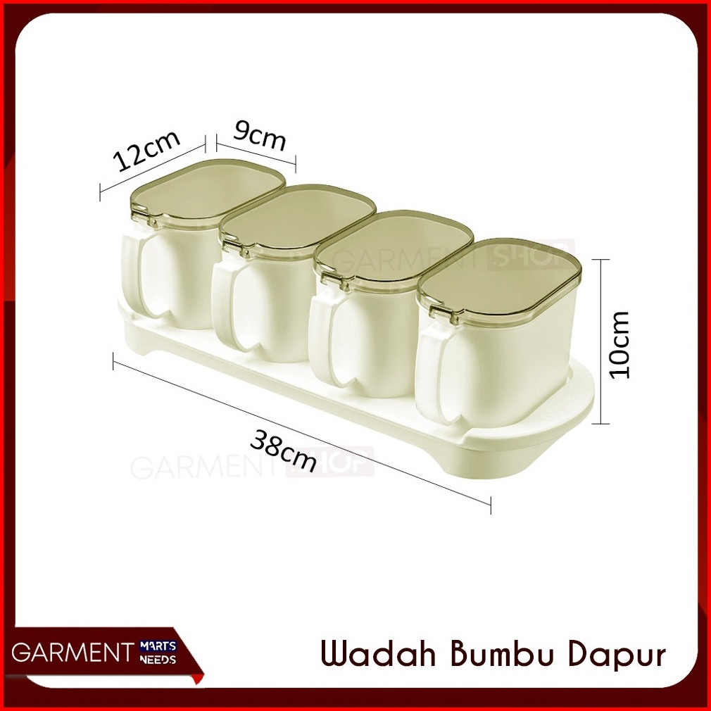 Set Tempat Bumbu Dapur 4in1 Seasoning Jar Box Spices Toples Wadah Bumbu Dengan Tutup Free Sendok