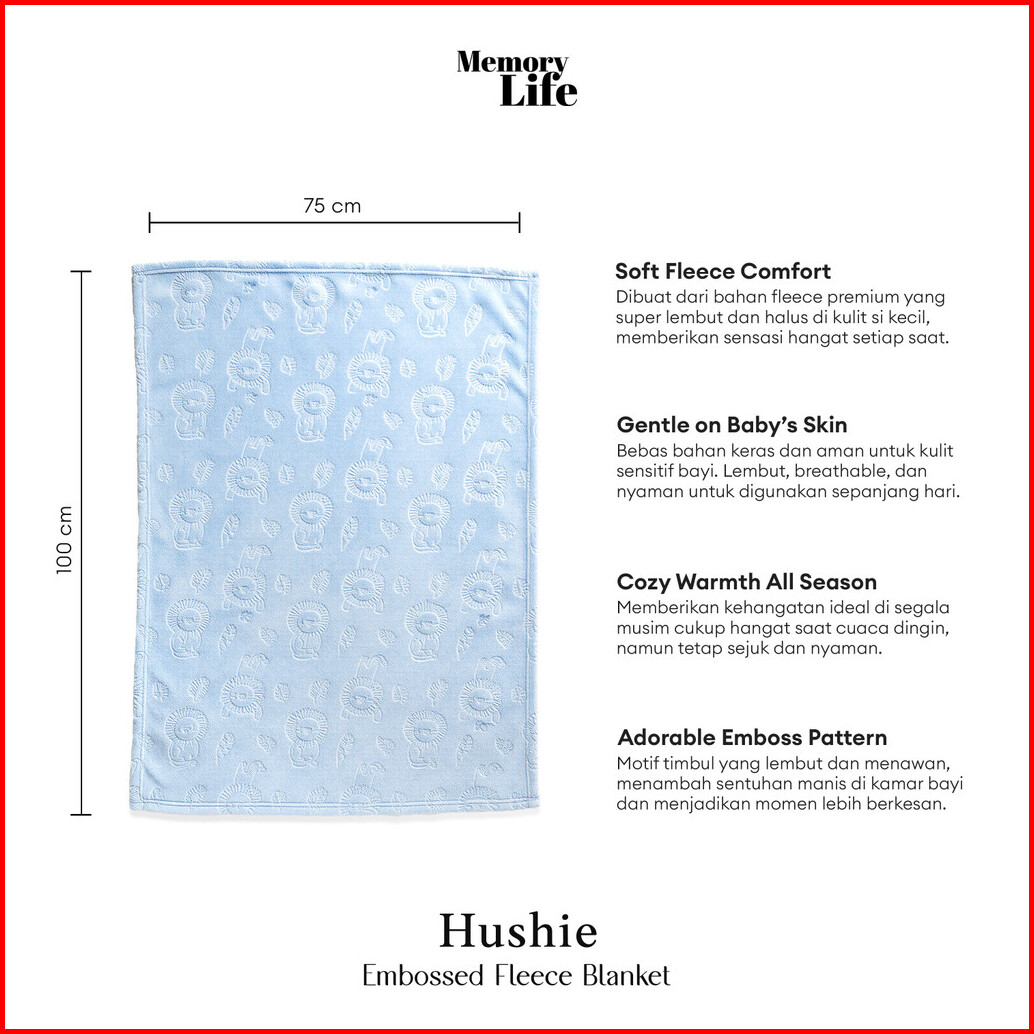 Memorylife - Hushie Embossed Blanket Premium Fleece Blanket Selimut Anak Bayi Premium