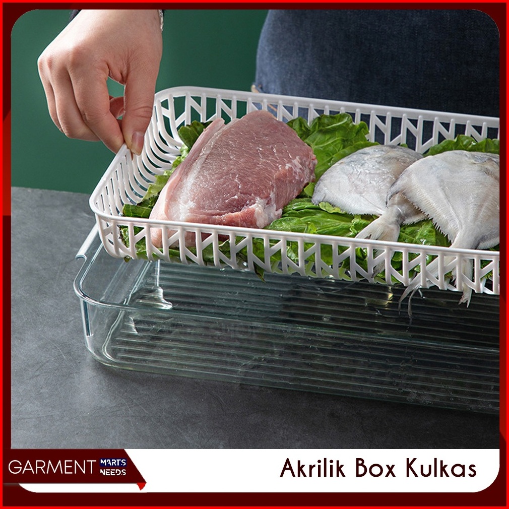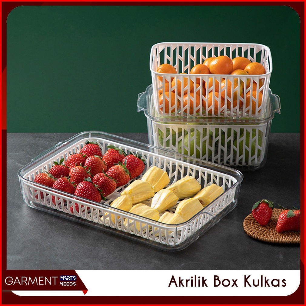 Food Container Kotak Makanan Buah Sayur Keranjang Kulkas Akrilik Transparan Dengan Dish Dryer