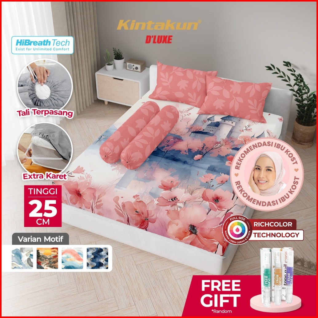 Kintakun Sprei Fitted 160x200 Dluxe Aesthetic Microtex Digital Printing Anti Geser 25 Cm Varian