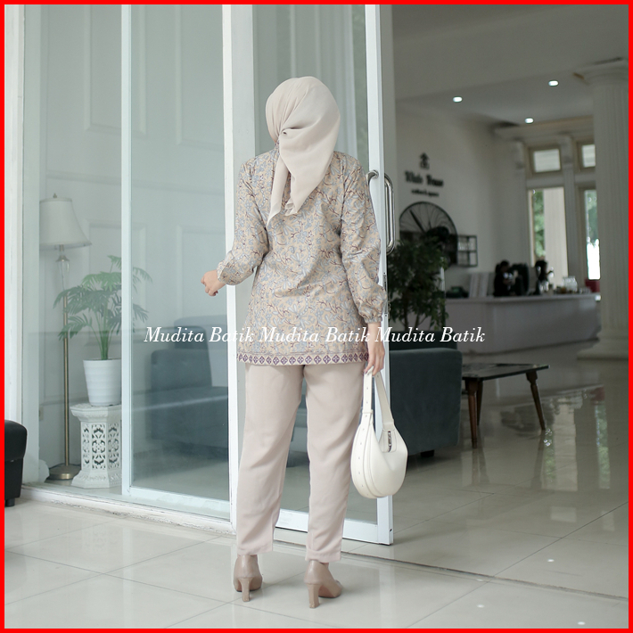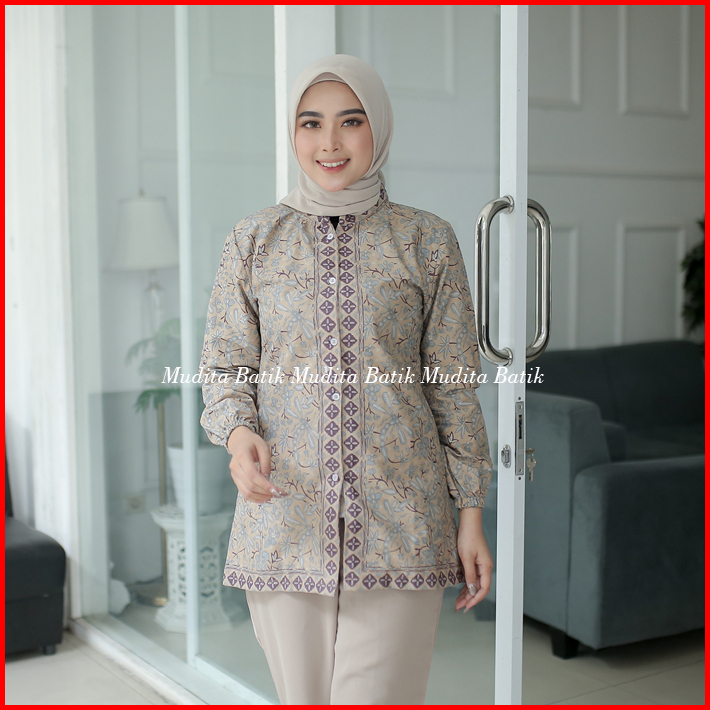 Batik Mudita Motif Kinasih Batik Wanita Kerja Lengan Panjang Warna Cream Katun Halus Nyaman Original Solo