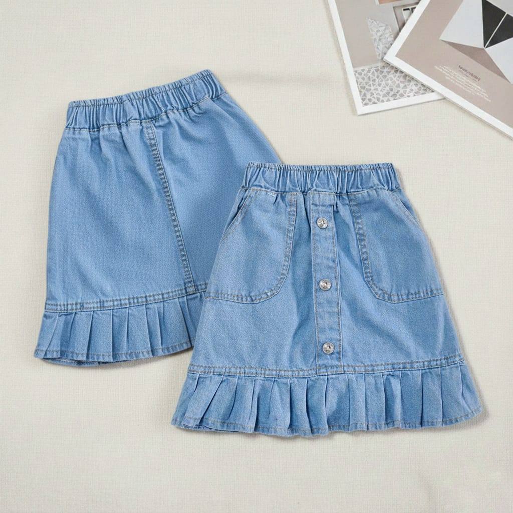 Rok Jeans Anak HANA Rok Jeans Ruffle Anak Perempuan 2-5 Tahun Pendek Lucu Modis Adem Dipakai Sehari-hari