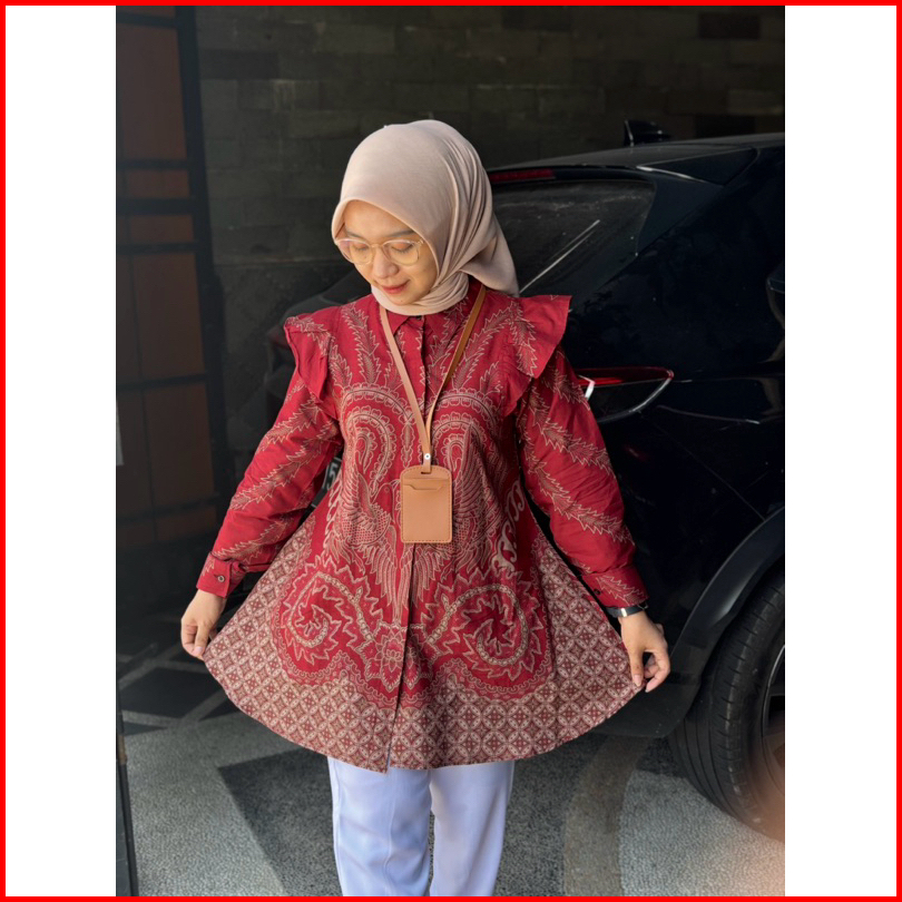 Blouse Kitty Rampel Batik Lengan Manset Atasan Wanita Kerja Terbaru