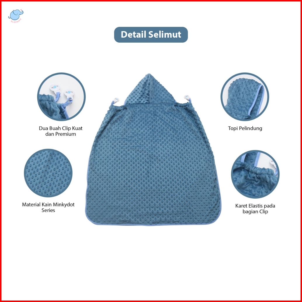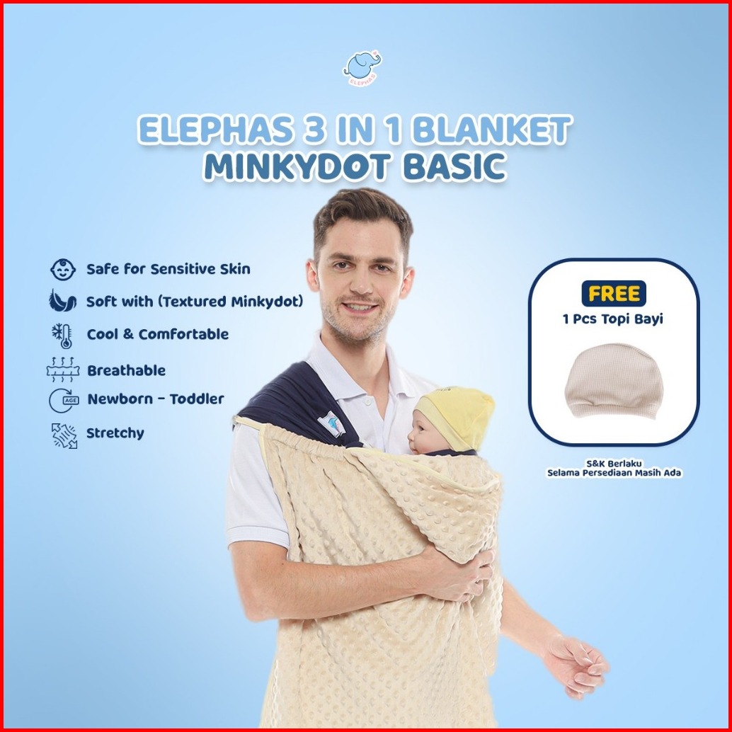 Elephas 3 In 1 Blanket Minky Dot Basic Series - Selimut Bayi Premium Hoodie Blanket Bergaransi Untuk Travel Bisa Apron M
