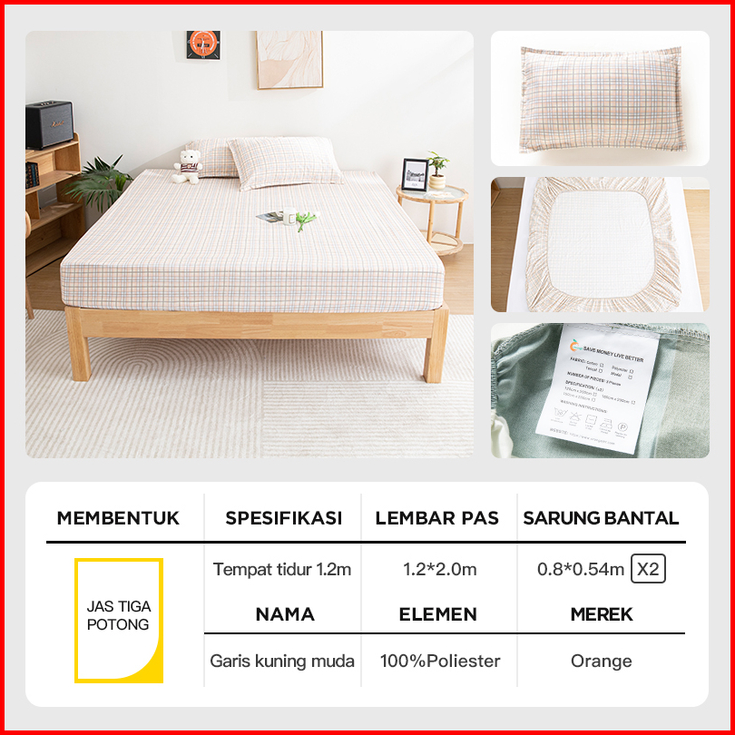 Premium Quality Sprei Sarung Bantal Aesthetic Anti Panas Ukuran 120cm X 200cm - Worlddekor
