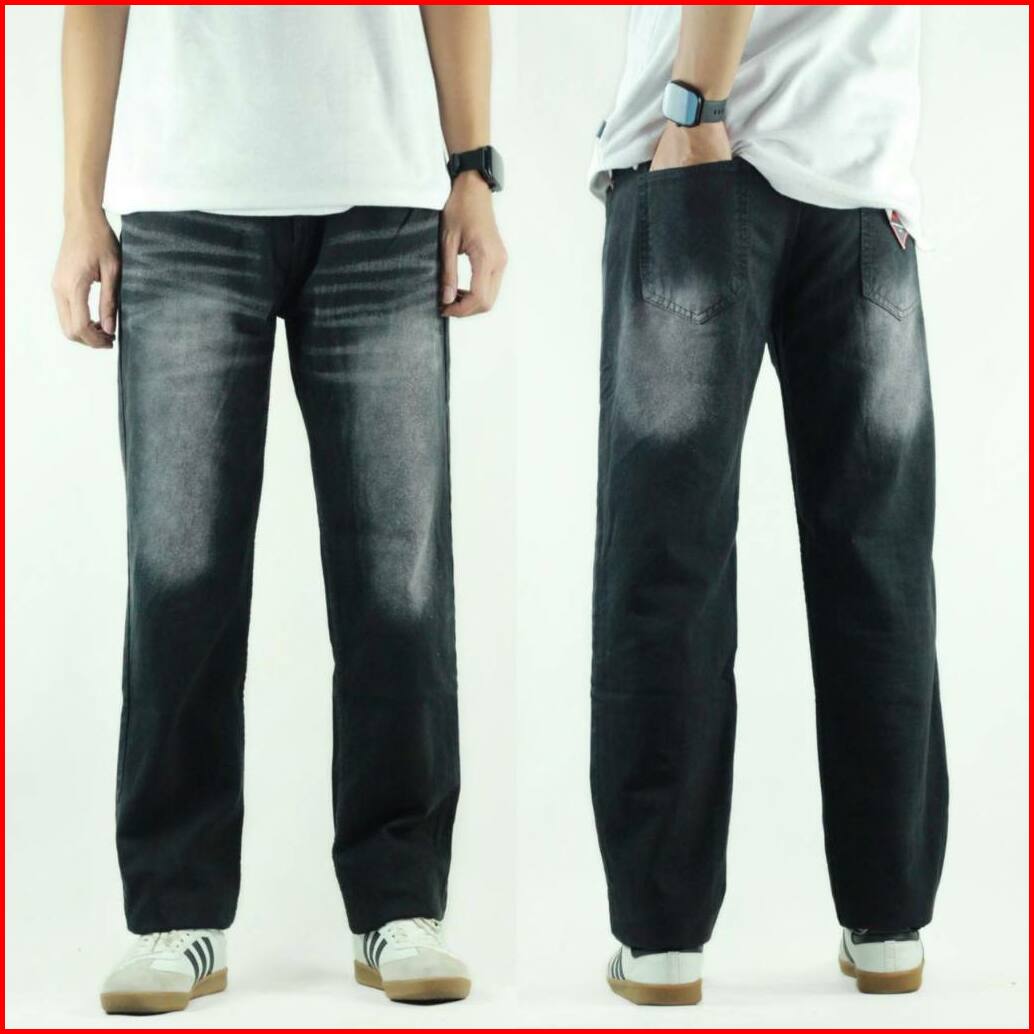 Celana Jeans Prewash Denim Black Jazz Whisker Standar Basic Reguler Pria 28 44