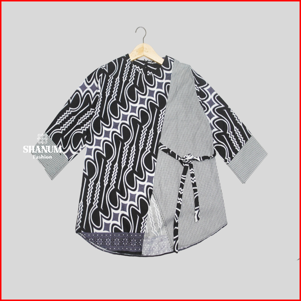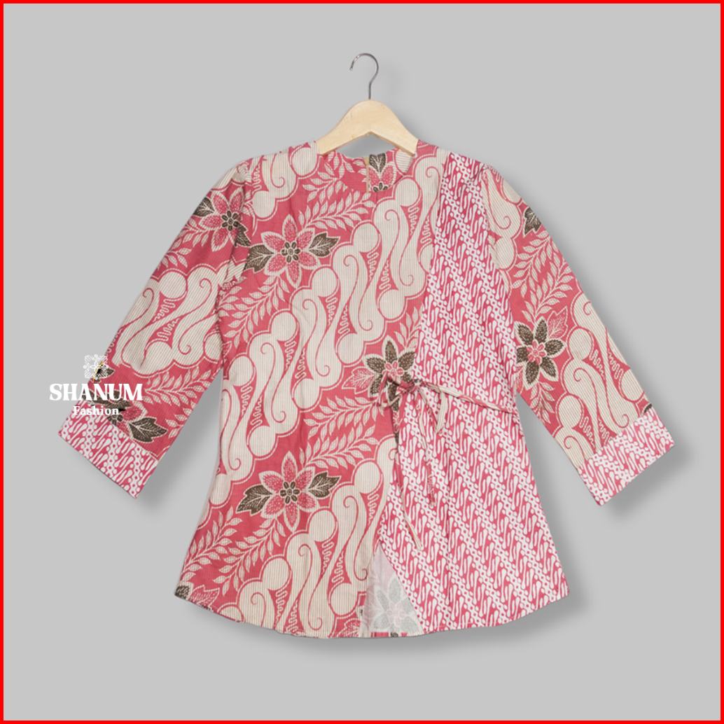 Shanum Batik Wanita Modern Kerja Lengan 3 4 Kancing Depan Bahan Katun Premium Kombinasi Polos Blouse Monalisa Genes Peka