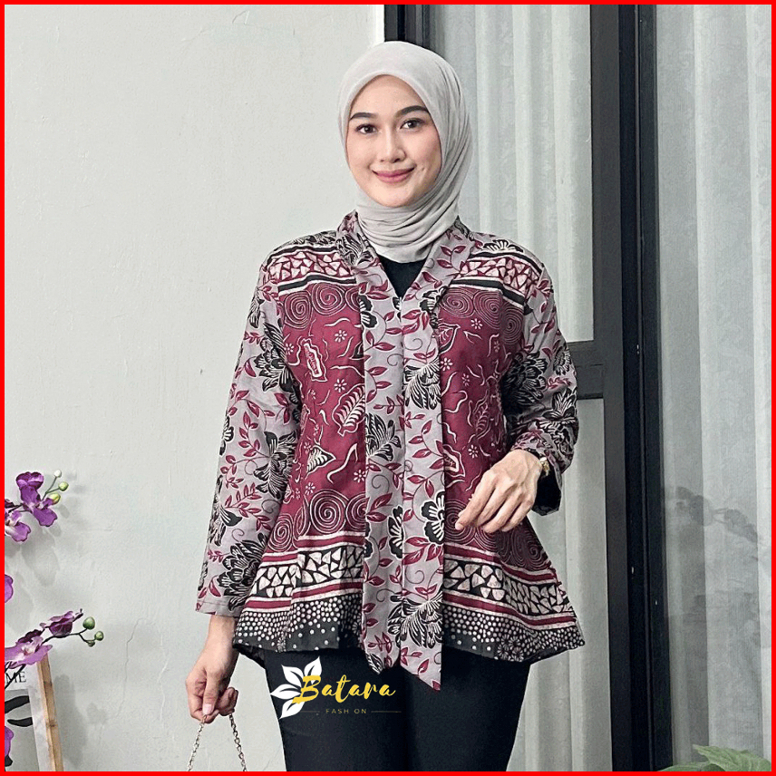 Batik Wanita - Kebaya Modern - Batik Kerja Lengan Panjang - Atasan Kebaya - Size M L Xl Xxl Xxxl
