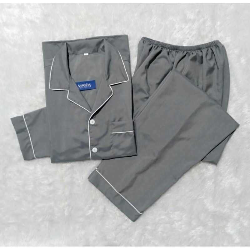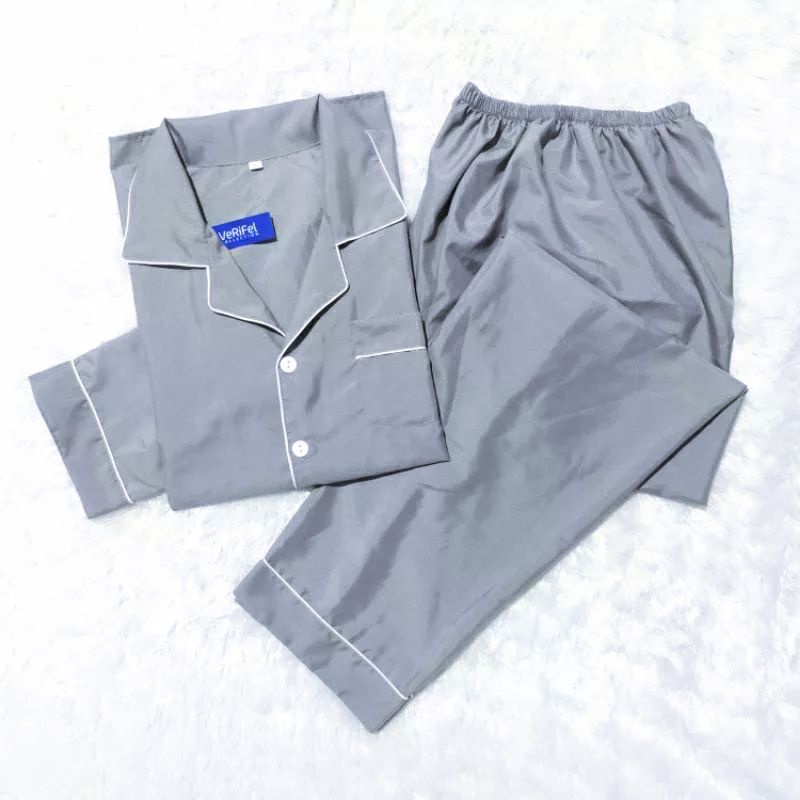 VeRiFel Piyama Abu Polos Baju Tidur Pria / Wanita Remaja / Dewasa / Jumbo Katun Lembut Berkualitas Promo Murah Setelan CP / PP Fit to 90kg 175cm Harga Grosir