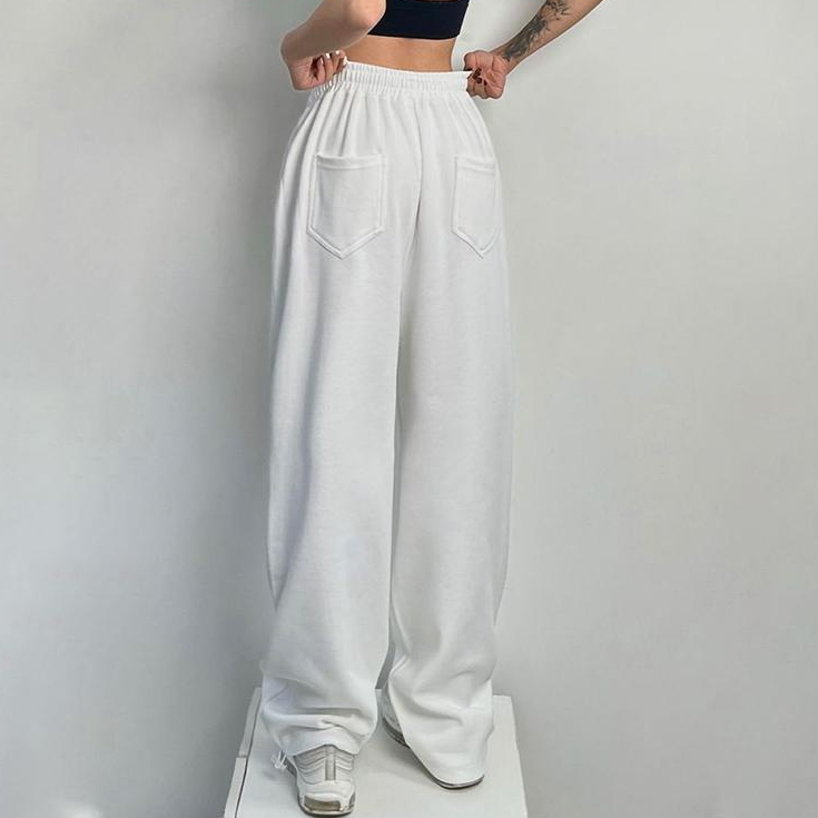 Spasmodic - Celana Sweatpants Loose Baggy Fleece Wanita Putih