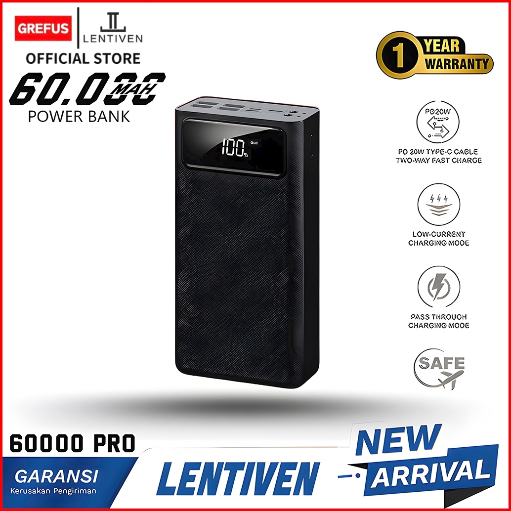Grefus Lentiven Powebank 60000 Mah 4 Usb Fast Charging External Battery