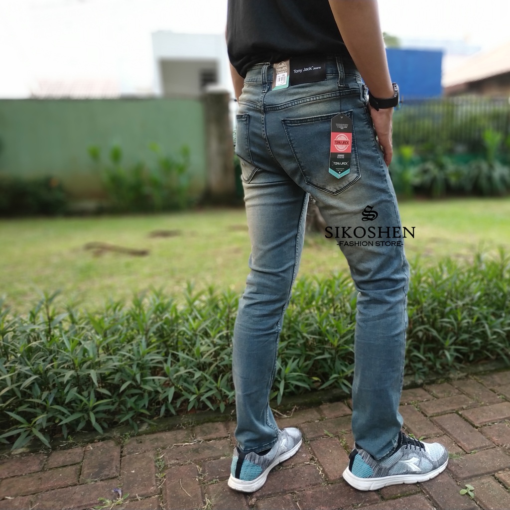 Celana Jeans Pria Original TONY JACK / Soft Jeans Panjang Biru Tua Wash