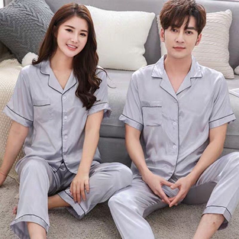 Paket stelan cp piyama couple satin exclusive silk pria dan wanita