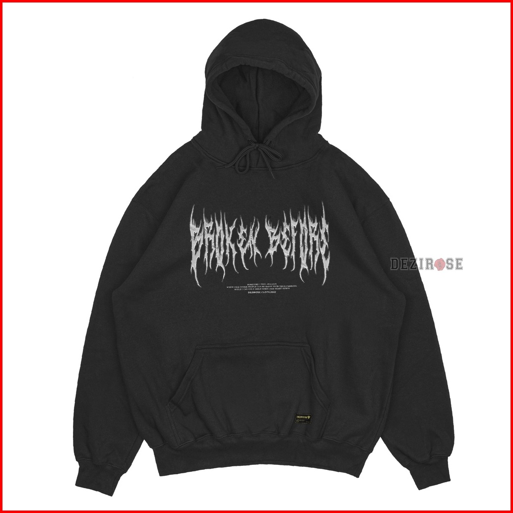 Dezirose Sweater Hoodie Metal Series Pria Distro Hitam Fleece Tebal Premium Hoodie Cowok Size M-xxl