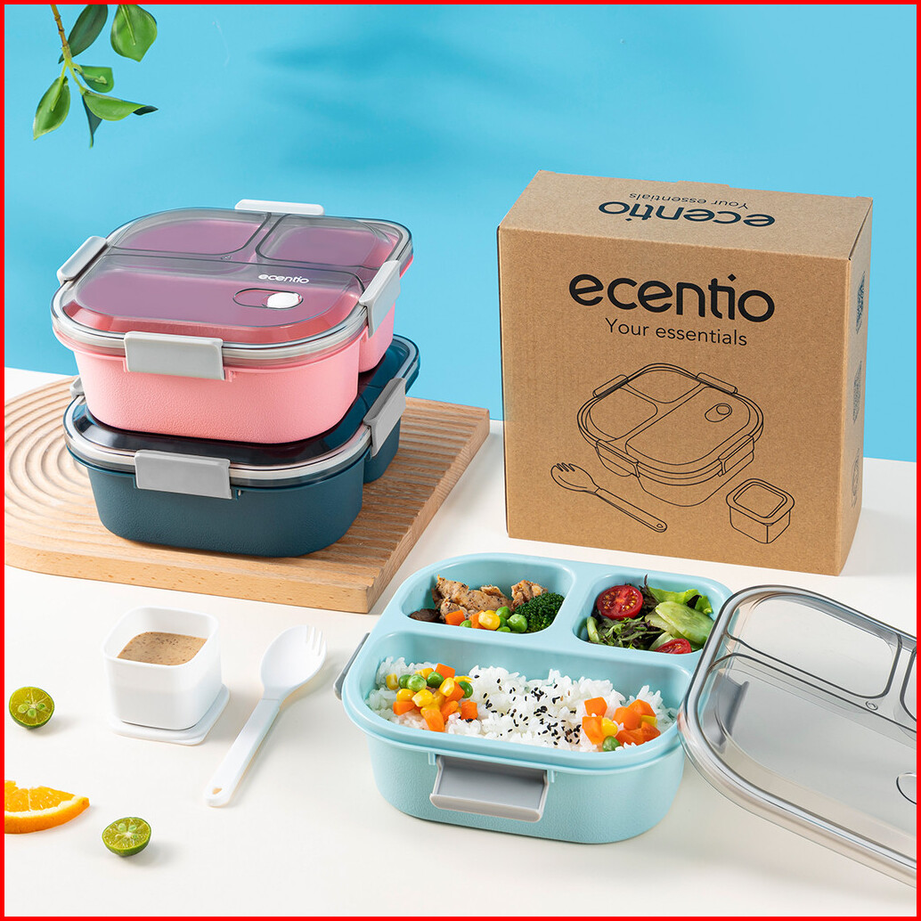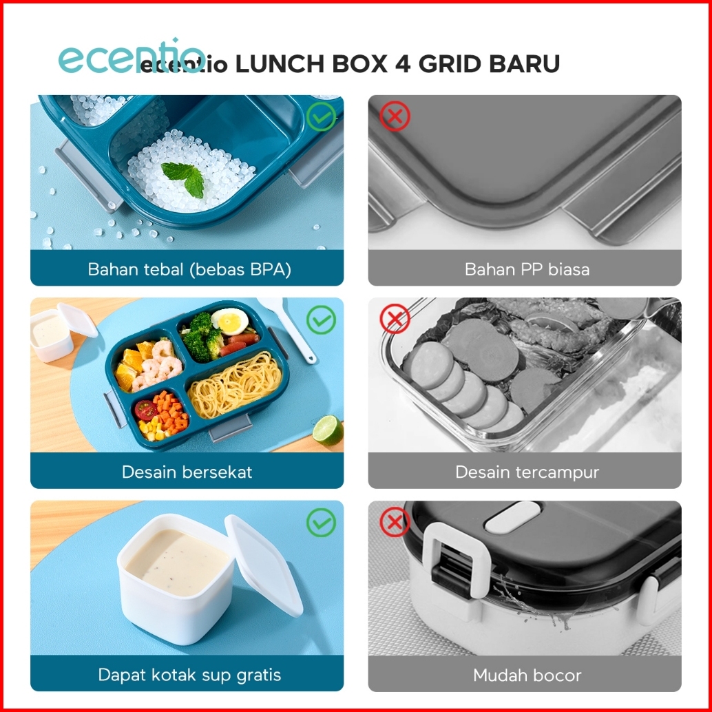 1.0 Anti Tumpahecentio Kotak Makan 3 4 Grid Dengan Dengan Kotak Sup Dan Sendok Gratis Lunch Box Anti Tumpah Tempat Makan