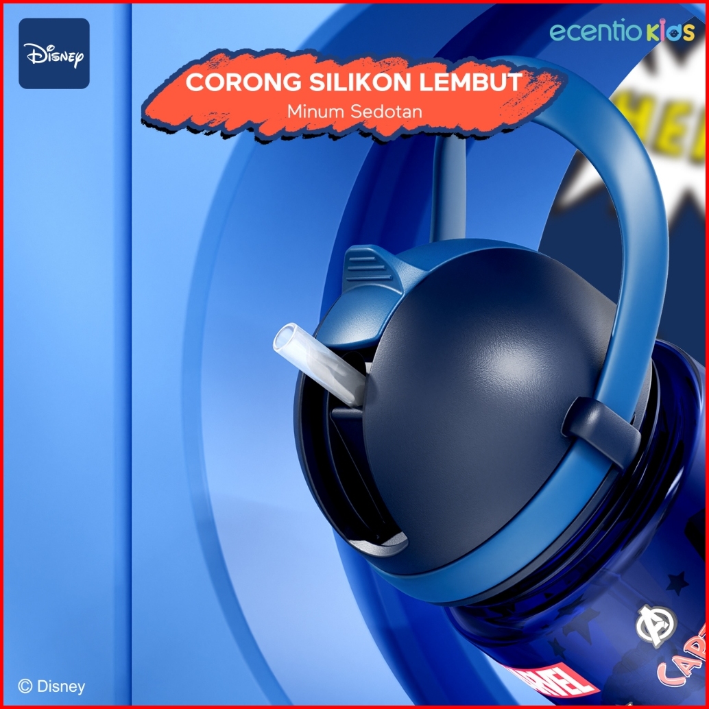 Ecentiokids Botol Minum Anak Laki Laki 550ml Disney Marvel Captain America Anti Bocor Anti Tumpah Tahan Panas Food Grade