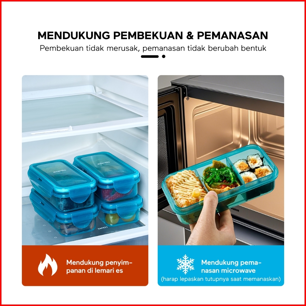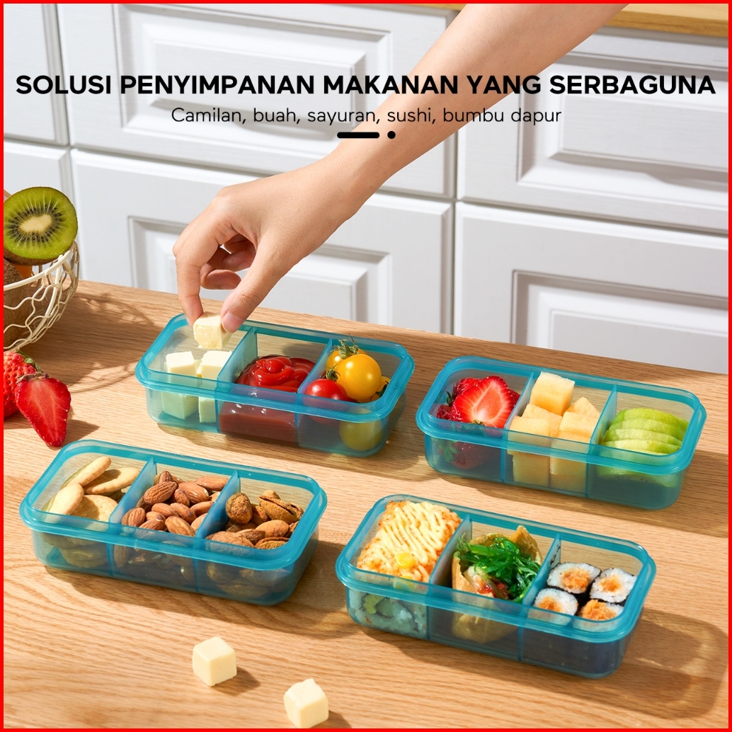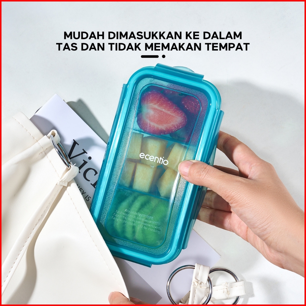 Ecentio Kotak Bekal Makan Siang 420ml Anti Tumpah Food Container 3 Gird Anak Lunch Box Pemanas Microwave Free Sendok Bpa