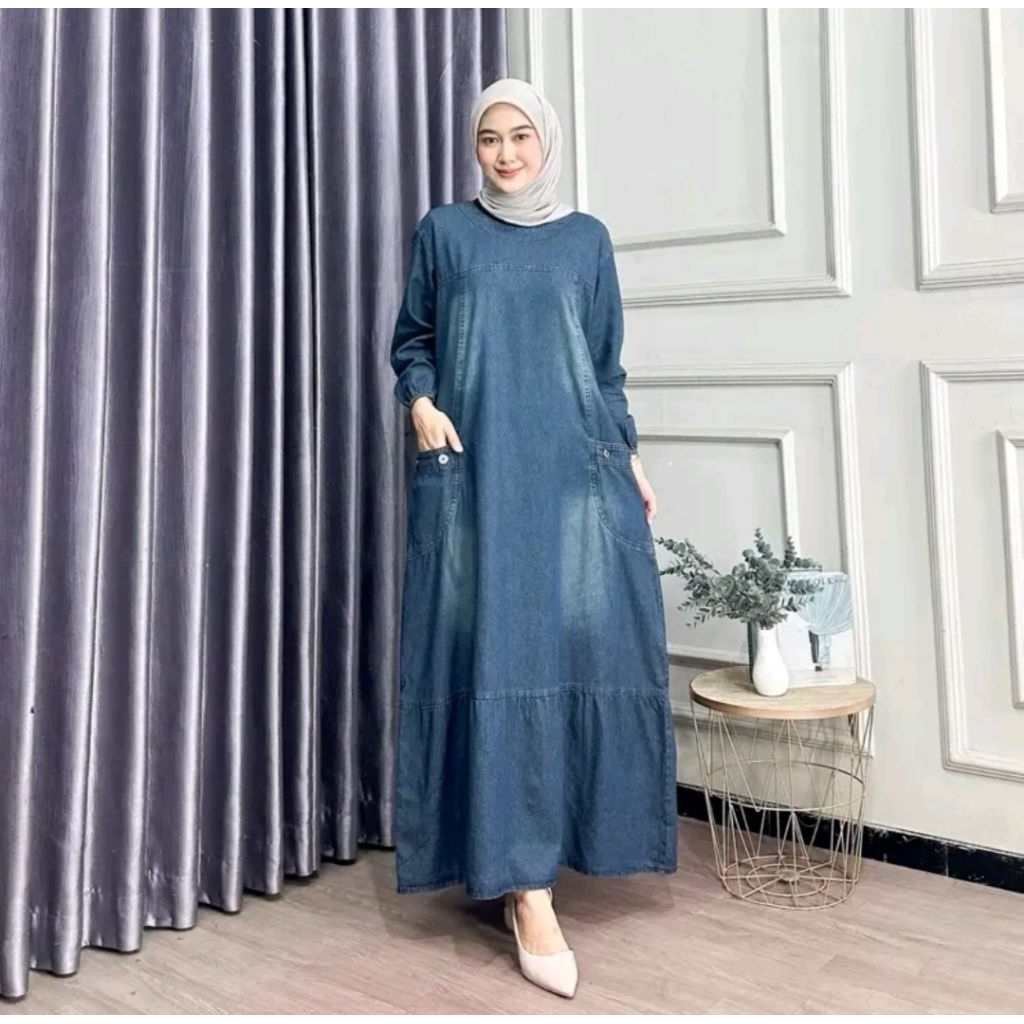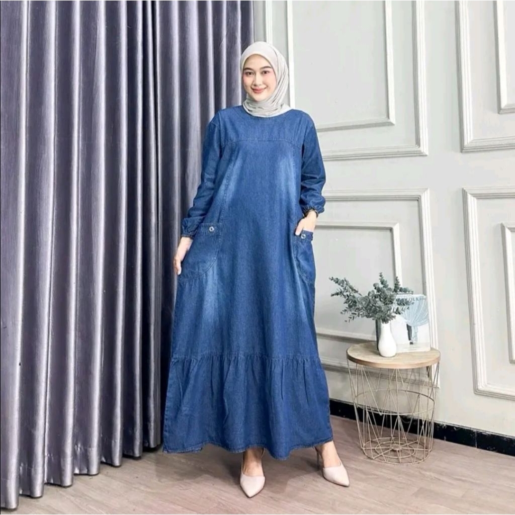 Gamis Jeans Susun Non Busui Panjang 135cm
